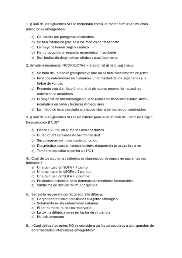 Examen infecciosas enero 2025 sin respuestas