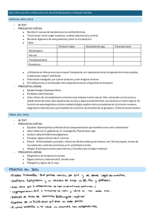 He publicado nuevos examenes de 4º Enfermedades Parasitarias: PREGUNTAS-PARCIAL-EP.pdf