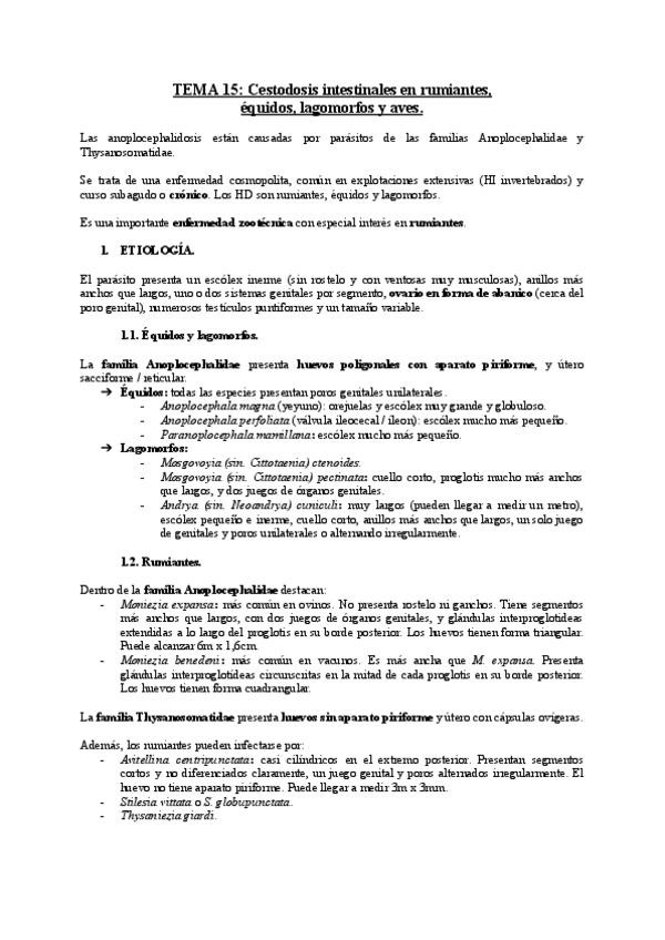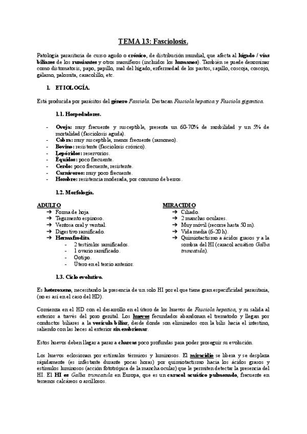 Las enfermedades resumidas a 1/2 caras. Faltan los tema 16 y 18 de nematodosis.
