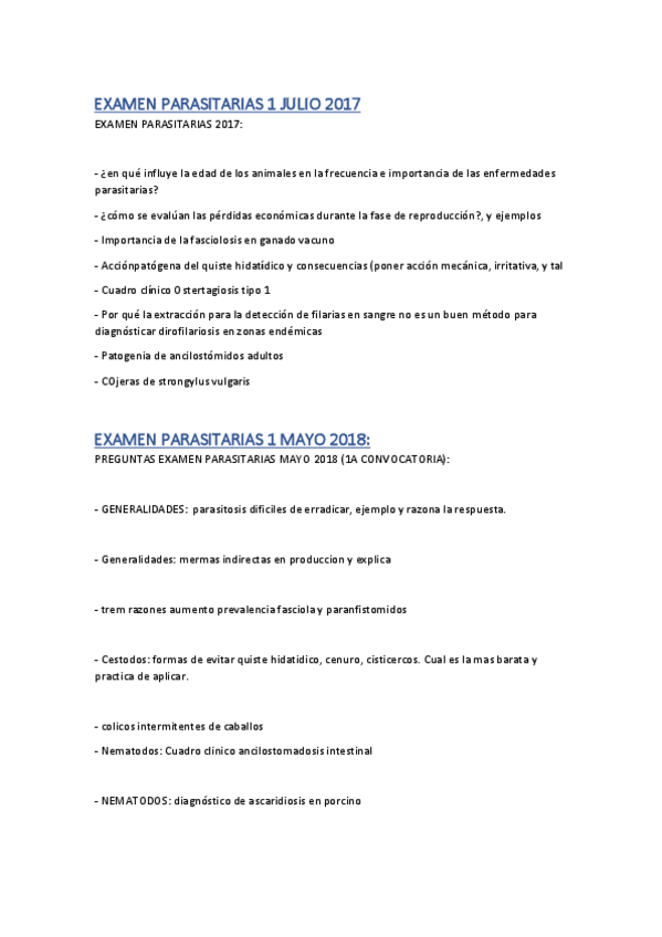 He publicado nuevos examenes de 3º Enfermedades Parasitarias I: Eamenes-PARASITARIAS-1-Julio-2017-y-Mayo-2018.pdf