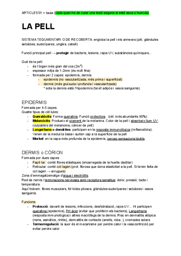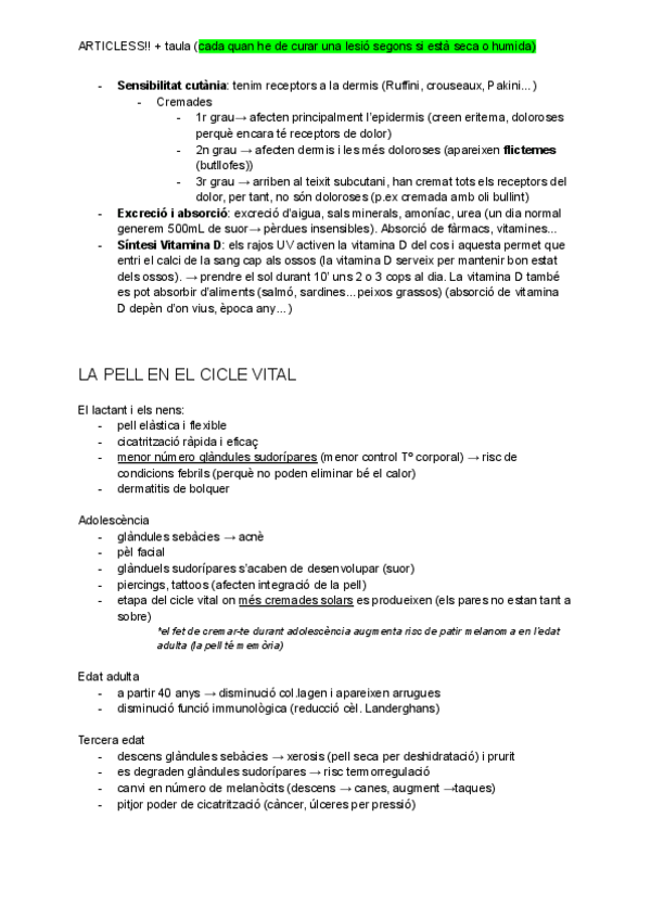 El document inclou comentaris i apartats subratllats que indiquen que són importants i podrien entrar a examen