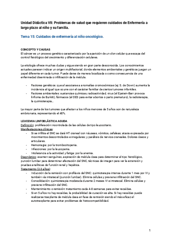 He publicado nuevos apuntes de 2º Enfermería de la Infancia y de la Adolescencia: T-15 Cuidados al niño oncológico