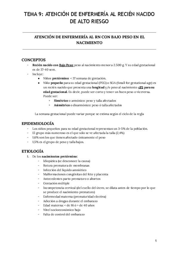 He publicado nuevos apuntes de 2º Enfermería del niño y del adolescente: T4 - Recién nacido de alto riesgo.pdf