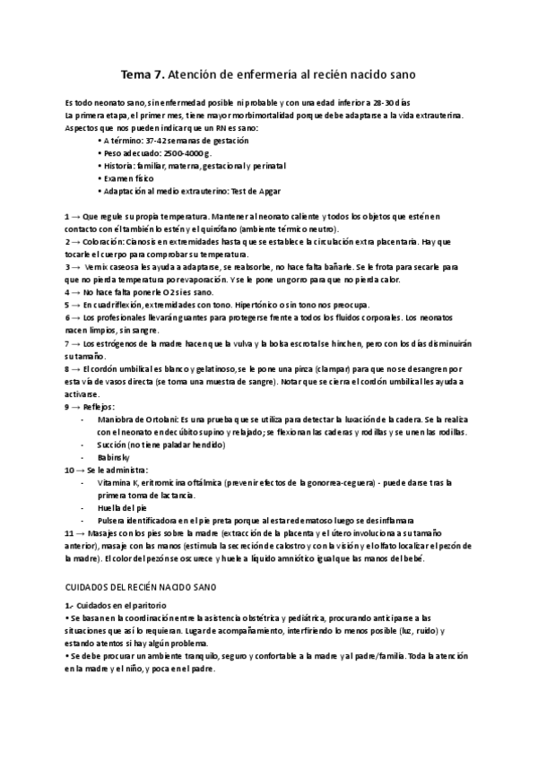 He publicado nuevos apuntes de 2º Enfermería del niño y del adolescente: T3 - Valoración y cuidados al recién nacido sano.pdf