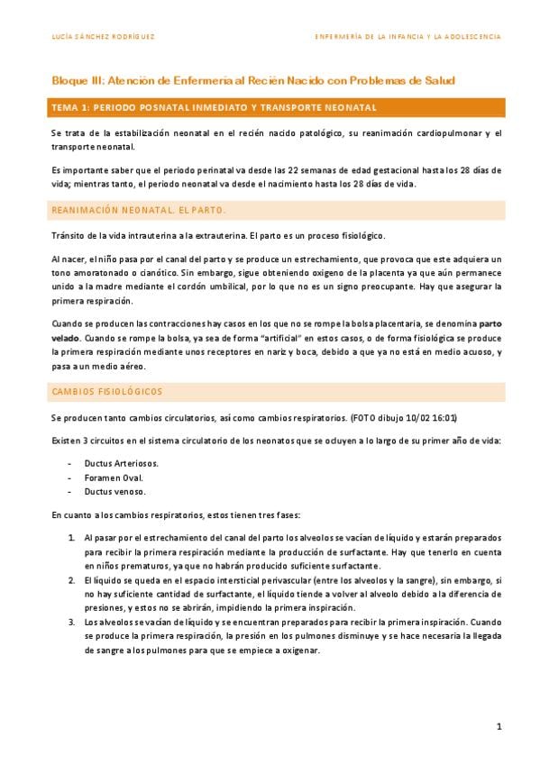 Tema 1, bloque 3: Presentación reanimación y transporte neonatal