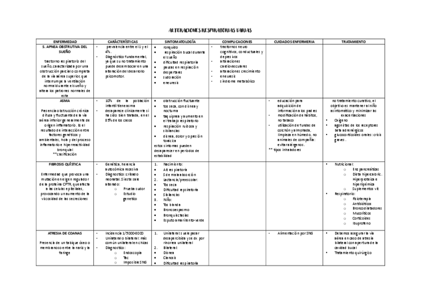 Tablas resúmenes enfermedades respiratorias