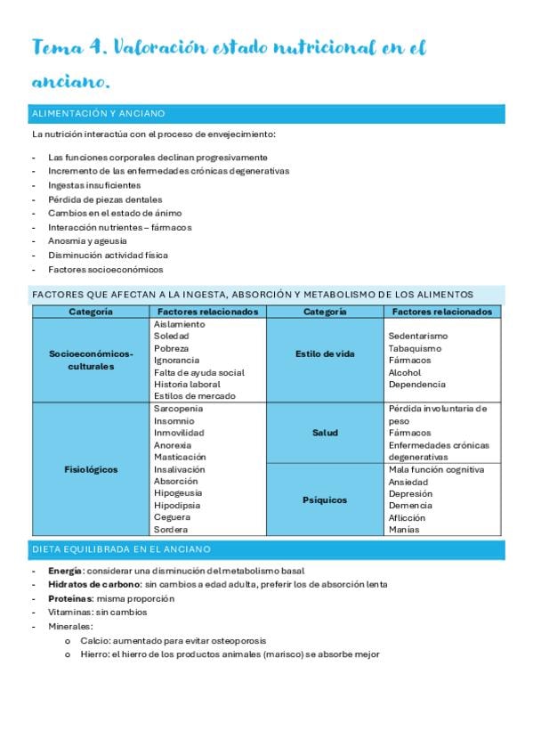 He movido algunos temas de bloque. Os dejo el índice con los temas que llevamos a continuación: BLOQUE 1. - Tema 1. Conceptos y generalidades de la vejez - Tema 2. El proceso de envejecimiento. Teorías del envejecimiento - Tema 3. Envejecimiento y población - Tema 4. La comunicación en la entrevista BLOQUE 2. - Tema 1. Cambios fisiológicos en el anciano sano - Tema 2. Cambios psicológicos en el anciano sano - Tema 3. Cambios sociales en el anciano sano BLOQUE 3. - Tema 1. Fragilidad del anciano - Tema 2. Caídas en el anciano - Tema 3. Malnutrición - Tema 4. Valoración estado nutricional en el anciano. BLOQUE 4. - Tema 1. Políticas de salud, gerontología y protección al mayor.