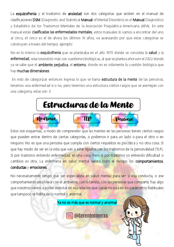 Apunte sobre estructura de la mente: Neurosis, Psicosis y Transtorno de la personalidad- Seguinos en Ig: @Serenfermerxs