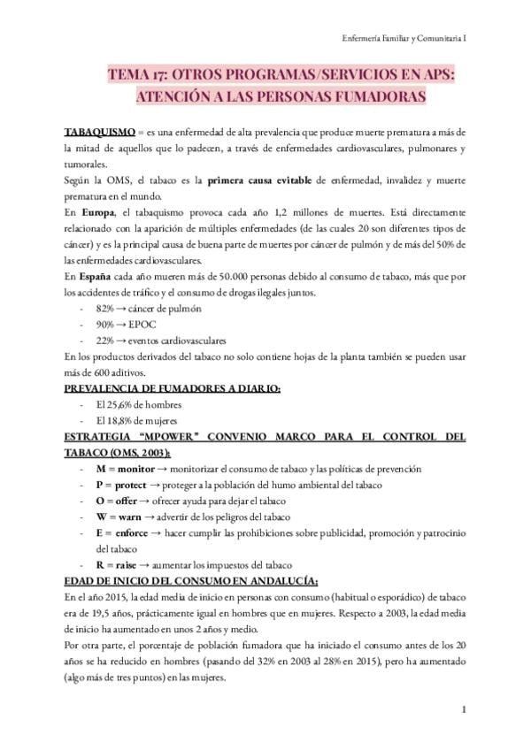 He publicado nuevos apuntes de 2º Enfermería Familiar y Comunitaria I: Tema-17-Otros-programasServicios-en-APS.-Atencion-a-las-personas-fumadoras.pdf