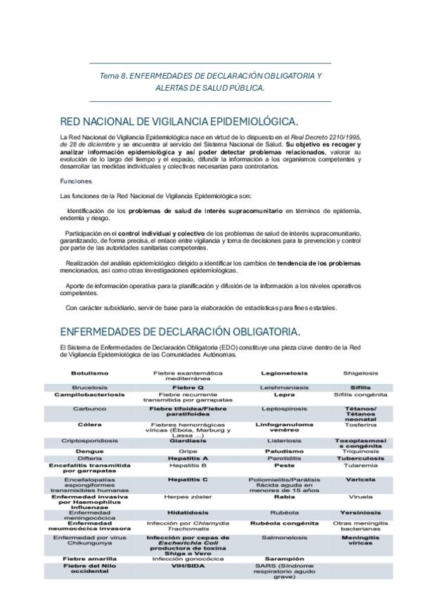 Tema 8. ENFERMEDADES DE DECLARACIÓN OBLIGATORIA Y ALERTAS DE SALUD PÚBLICA.