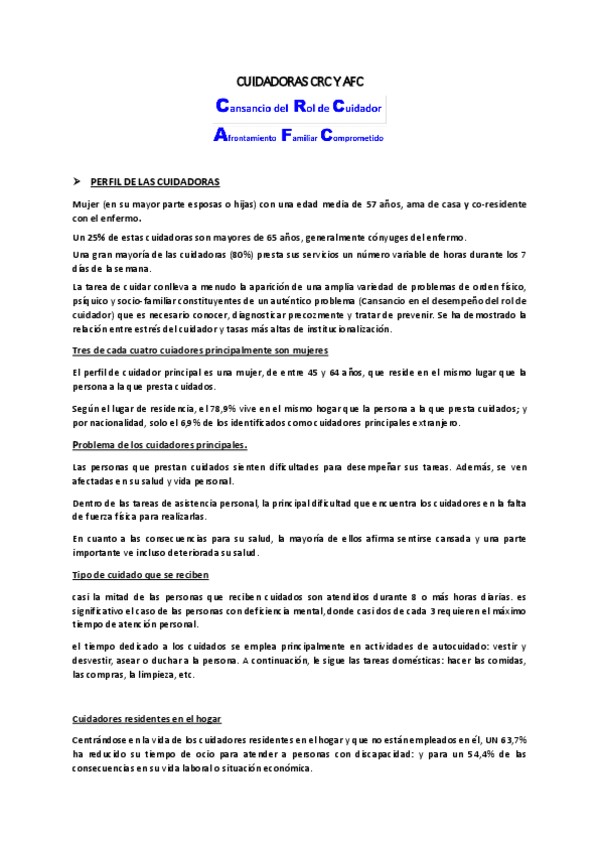 He publicado nuevos apuntes de 1º Enfermería Familiar y Comunitaria: Cuidadoras familiares