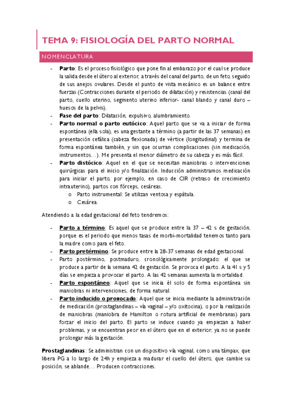 Apuntes tema 4 hasta la fase del alumbramiento (incluida la teoría de los seminarios)