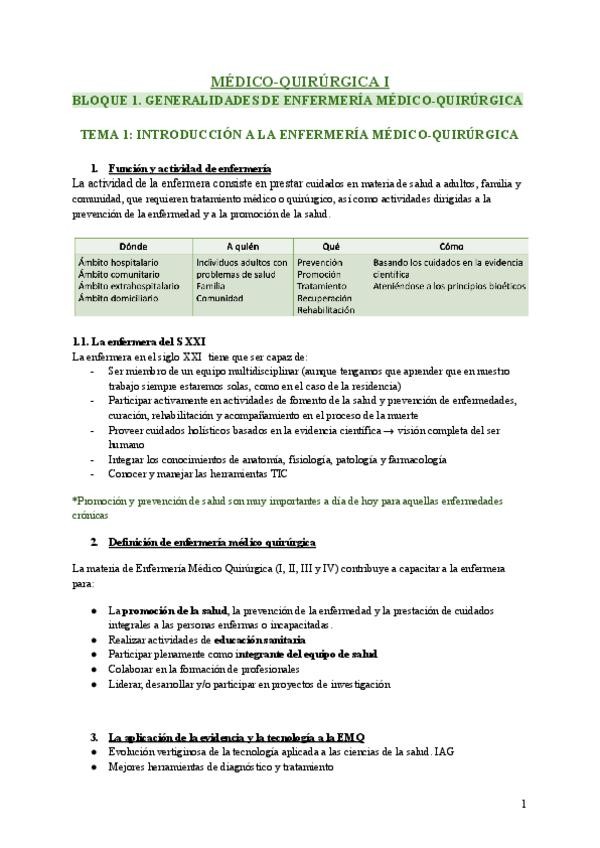 Apuntes Tema 1 y 2 Médico-Quirúrgica
