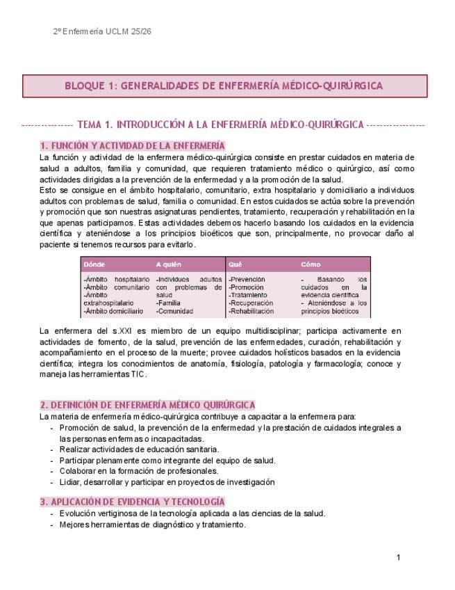 Apuntes Tema 1 y 2 Médico-Quirúrgica