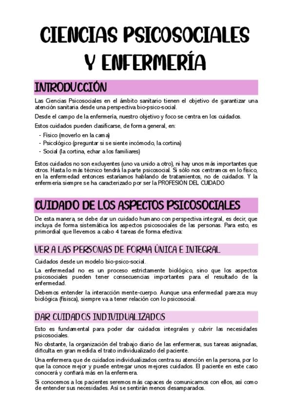Apuntes primero de enfermeria , psicosocial , con añadidos en clase explicado