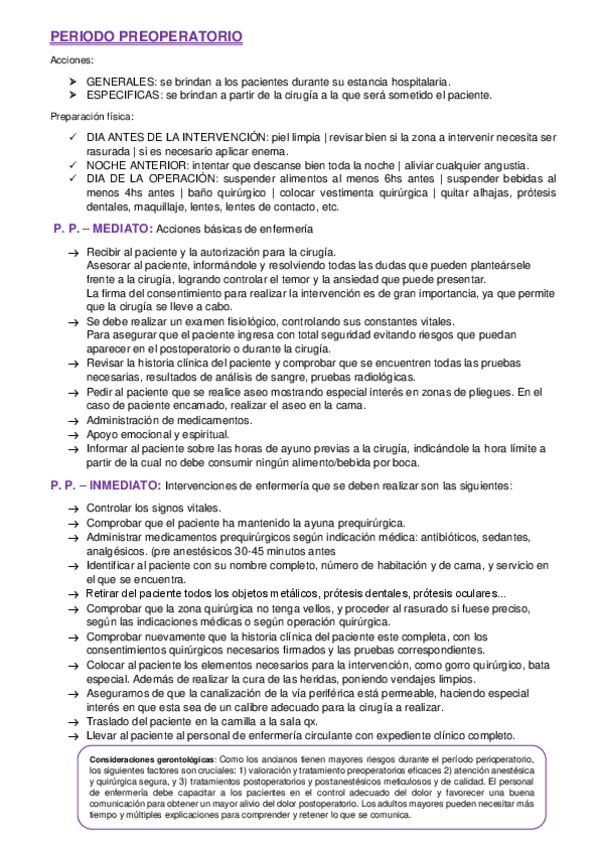 Resumen FASE PREOPERATORIO o PREQUIRURGICO: Mediato e Inmediato - Consentimiento Informado - Cirugías