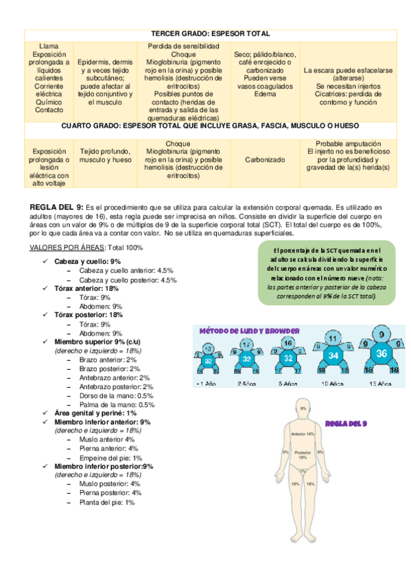 Resumen de afecciones musculo esqueletico y tegumentario: capas de la piel - quemaduras - esguince - fracturas - luxaciones - tutor externo - tracción esquelética - injerto - desbridamiento - regla del 9