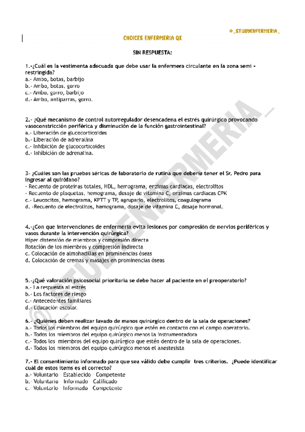 He publicado nuevos examenes de 2º Enfermería Quirúrgica: CHOICES-ENFERMERIA-QUIRURGICA-STUDYENF.pdf