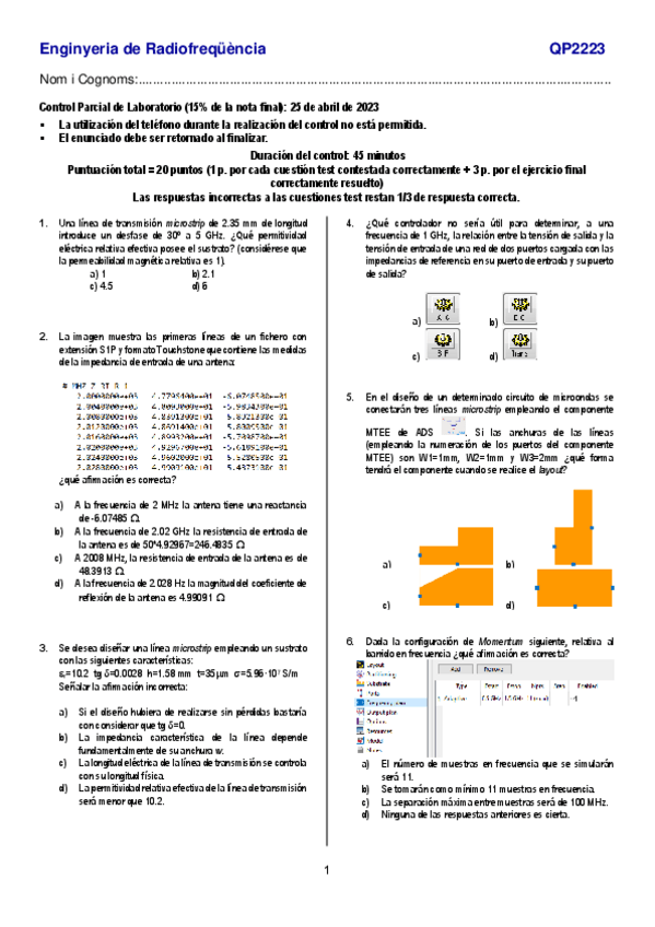 He publicado nuevos examenes de 3º Enginyeria d'RF: control 1