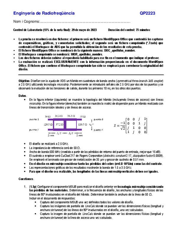 He publicado nuevos examenes de 3º Enginyeria d'RF: control lab 1