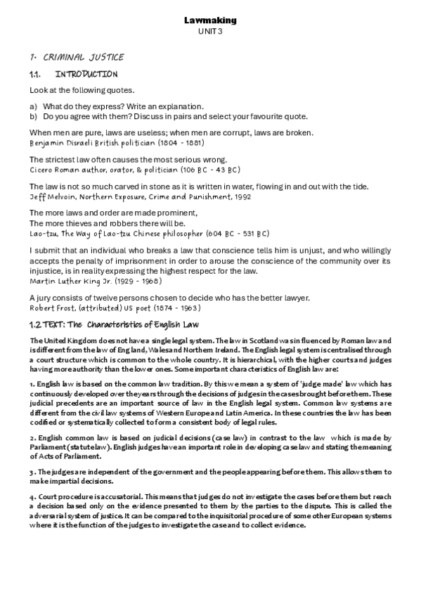 He publicado nuevos apuntes de 4º ENGLISH FOR CRIMINOLOGY: LIBRO - T.1. LAWMAKING