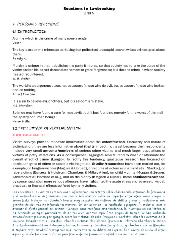 He publicado nuevos apuntes de 4º ENGLISH FOR CRIMINOLOGY: LIBRO - T.3. REACTIONS TO LAWBREAKING