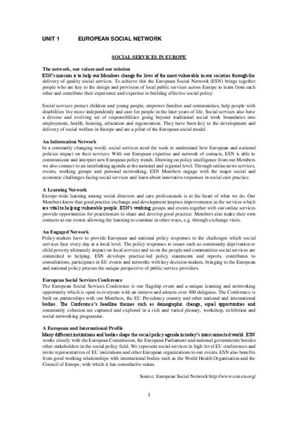 English for Education and Social Work