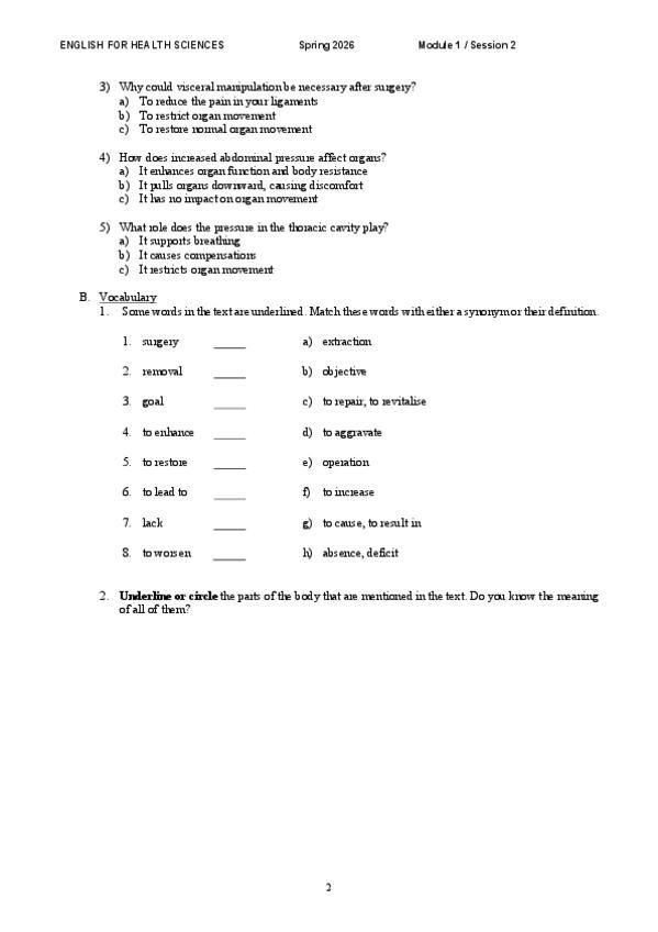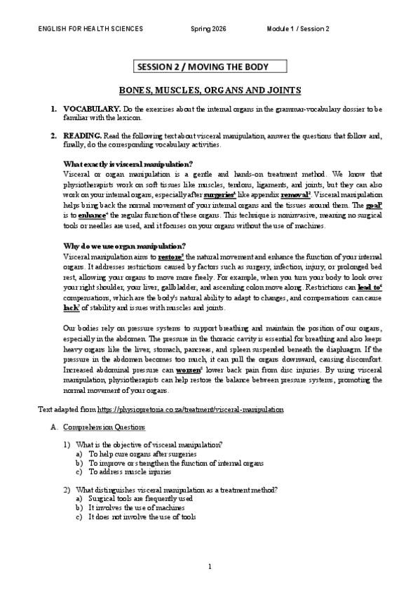 He publicado nuevos ejercicios de 1º English for Health Sciences: M1-Session-2.pdf