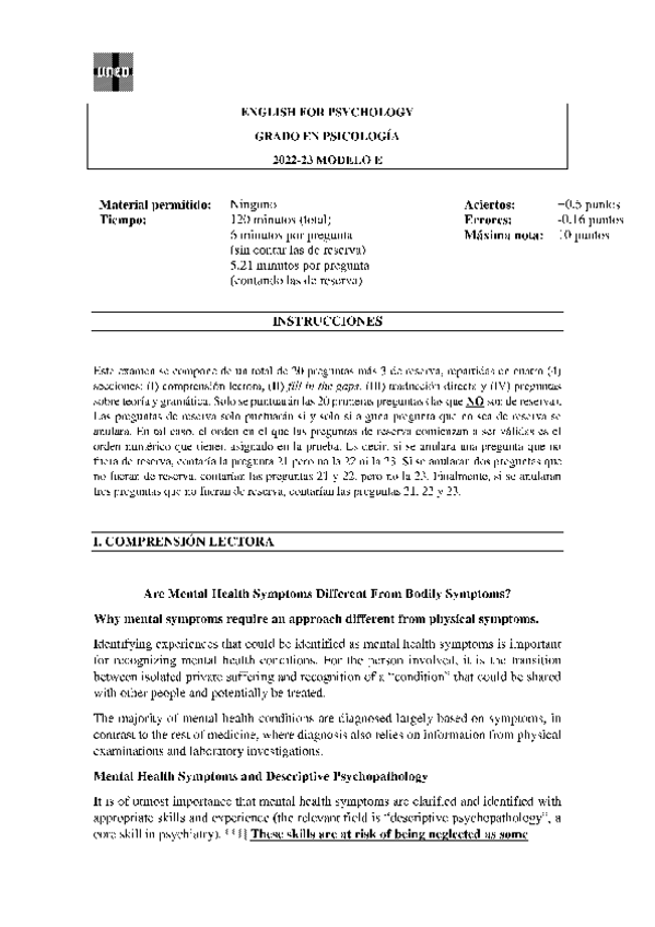 Exámenes English for Psychology