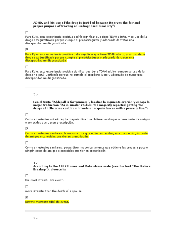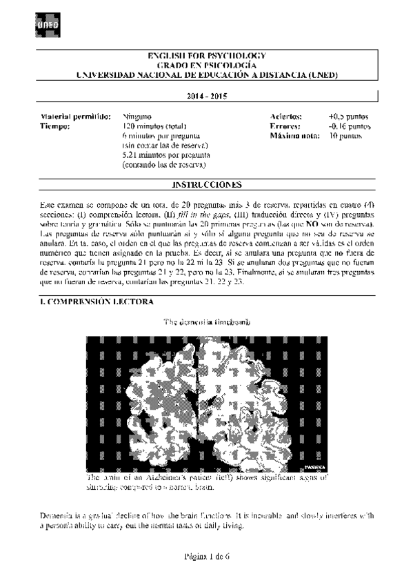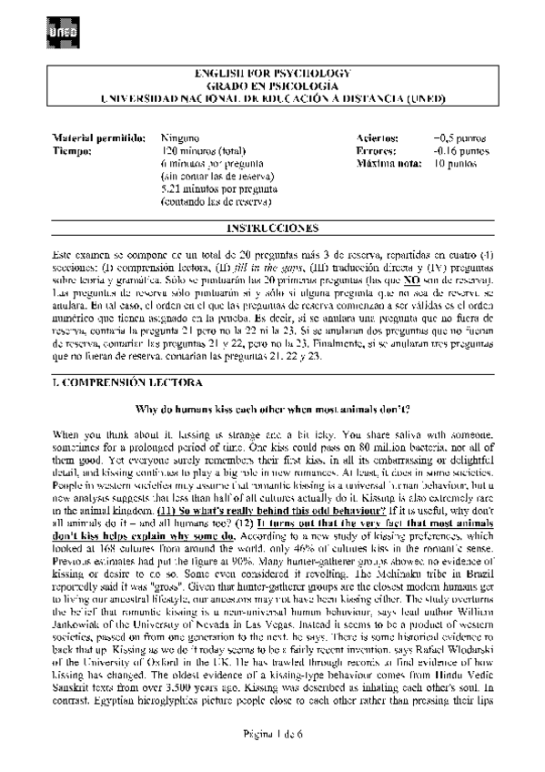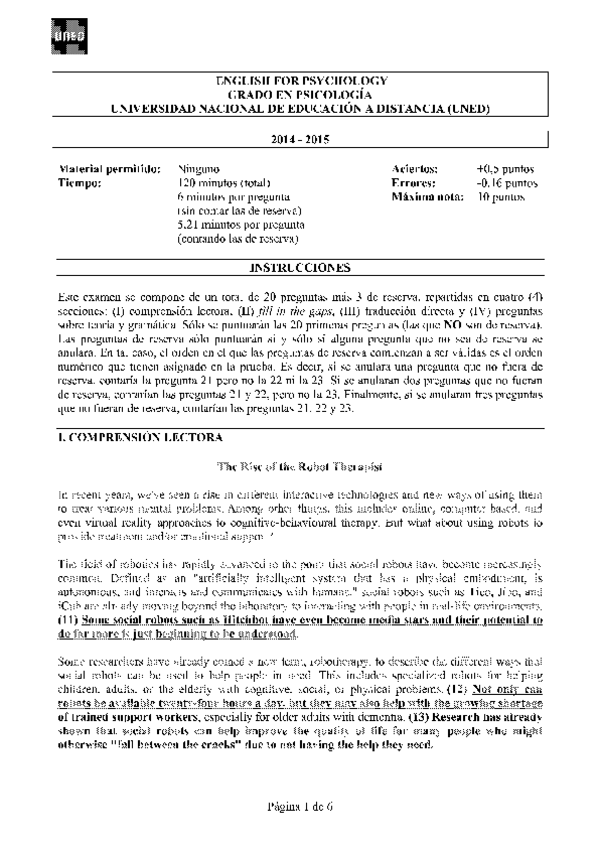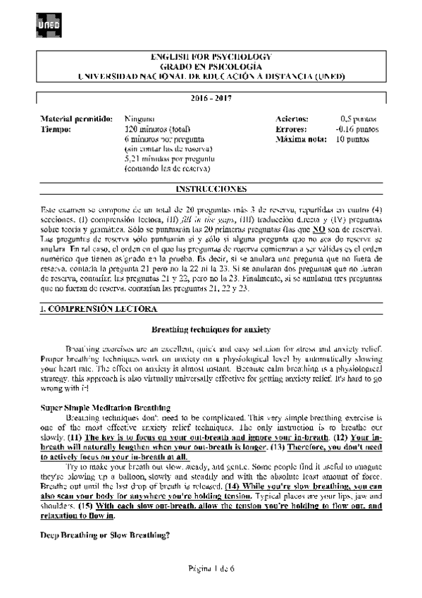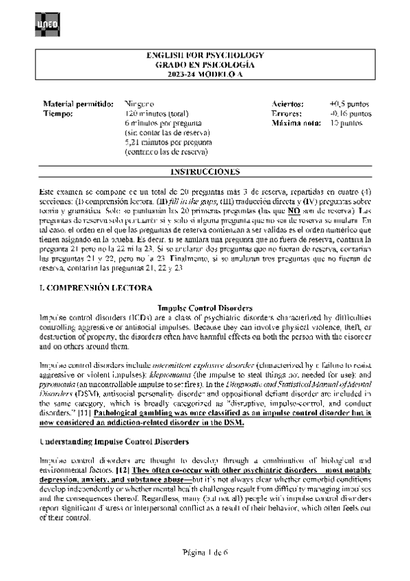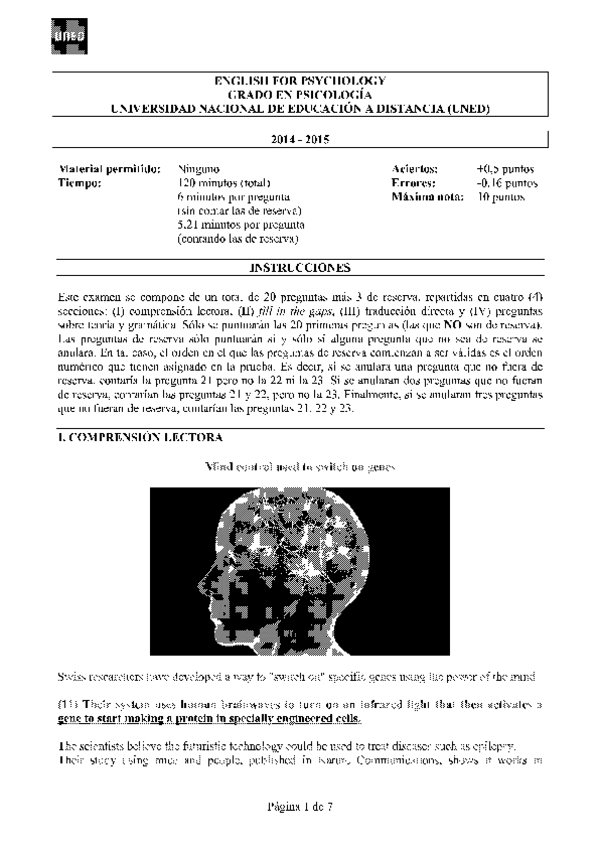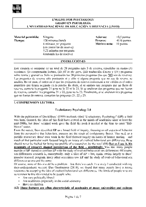 Exámenes English for Psychology