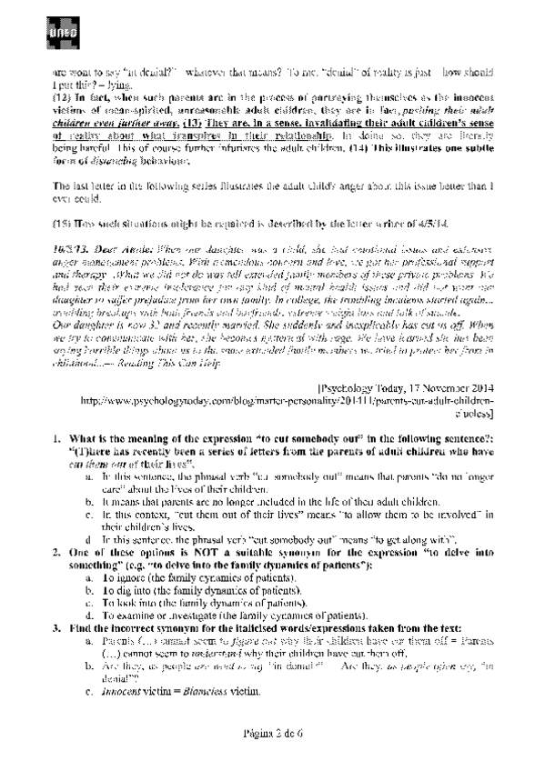 He publicado nuevos pec de 4º English For Psychology: Ejercicios-Tema-2-Soluciones.pdf