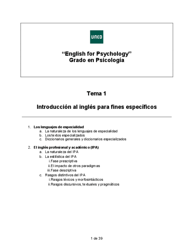 He publicado nuevos apuntes de 4º English For Psychology: TEMA-1.-Introduccion-al-ingles-para-fines-especificos.pdf