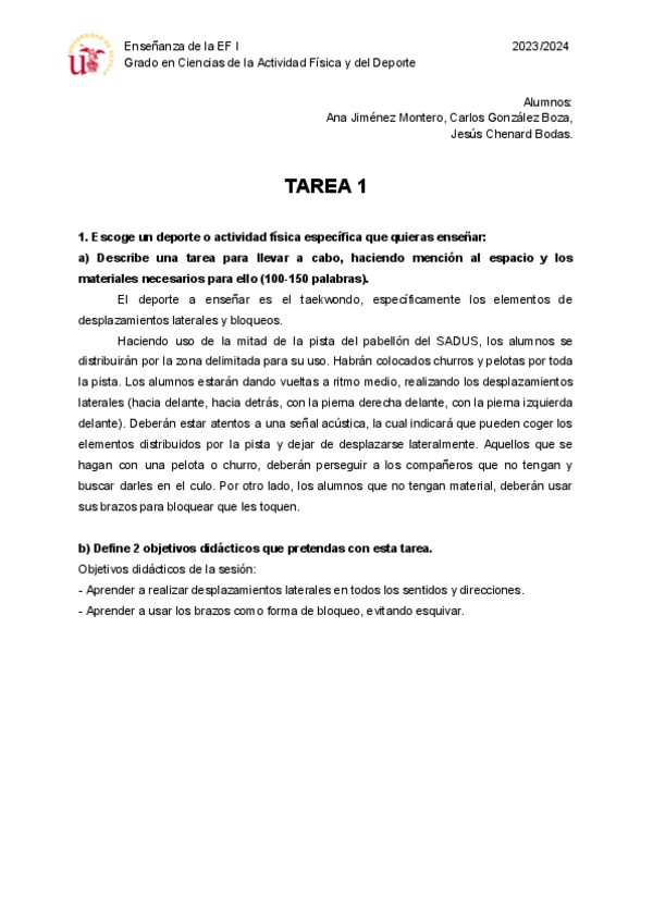 Enseñanza de la Educación Física I