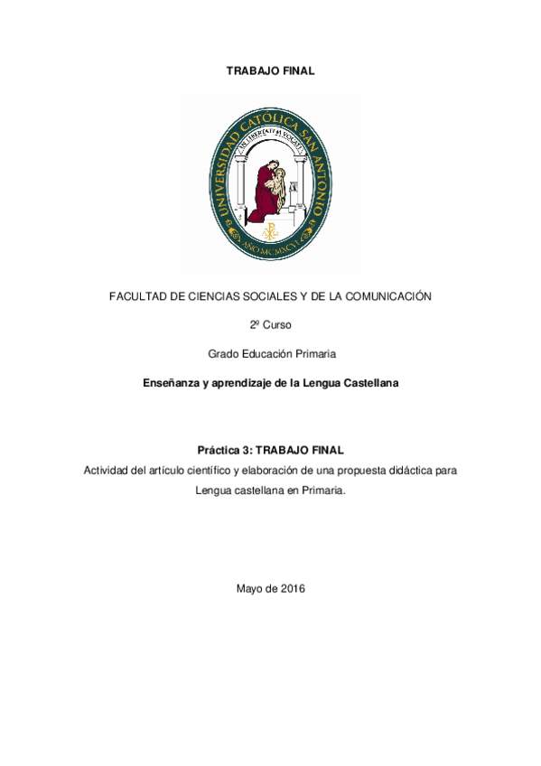 He publicado nuevos trabajos de 2º Enseñanza y Aprendizaje de la Lengua Castellana: TRABAJO FINAL LENGUA CASTELLANA