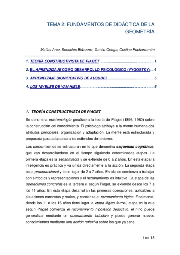Apuntes de clase Van Hiele, Del Grande, Mc Gee, Tesis de la primacía topologica(Piaget)