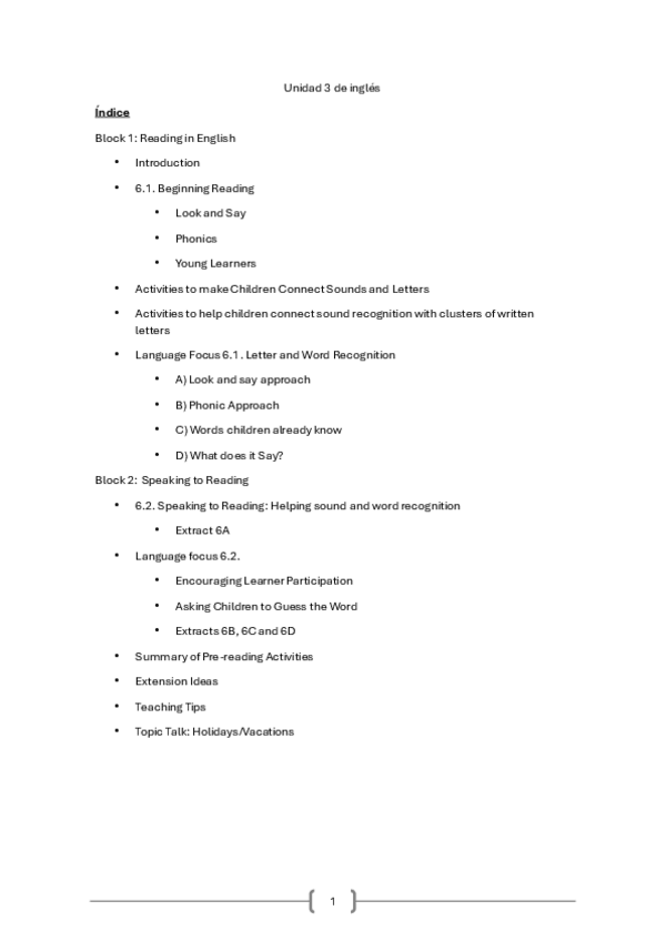 He publicado nuevos apuntes de 3º Enseñanza y aprendizaje del inglés en educación primaria: Unit-1.pdf