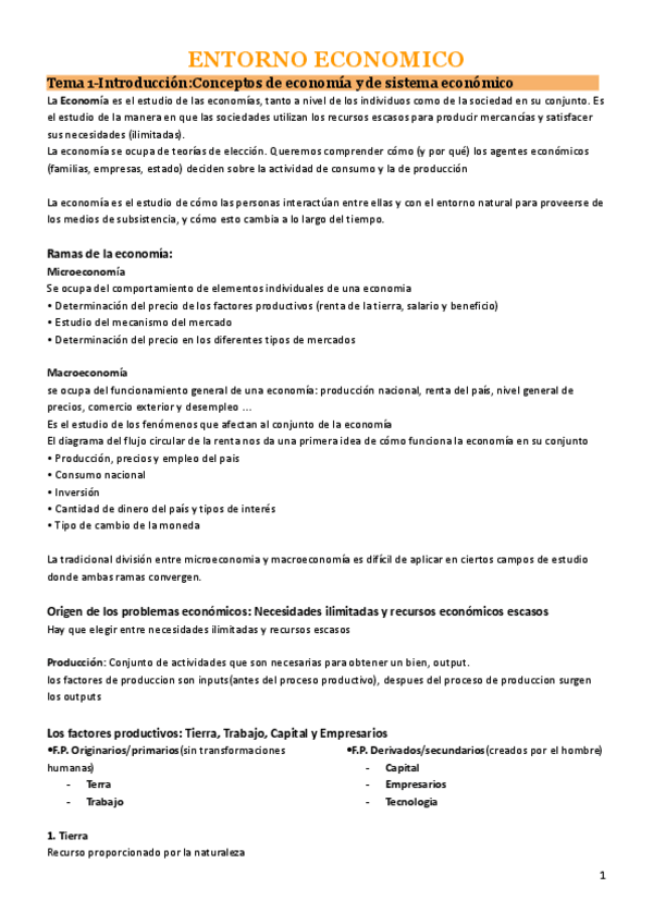 He publicado nuevos apuntes de 1º entorno Económico: Resúmenes de la asignatura