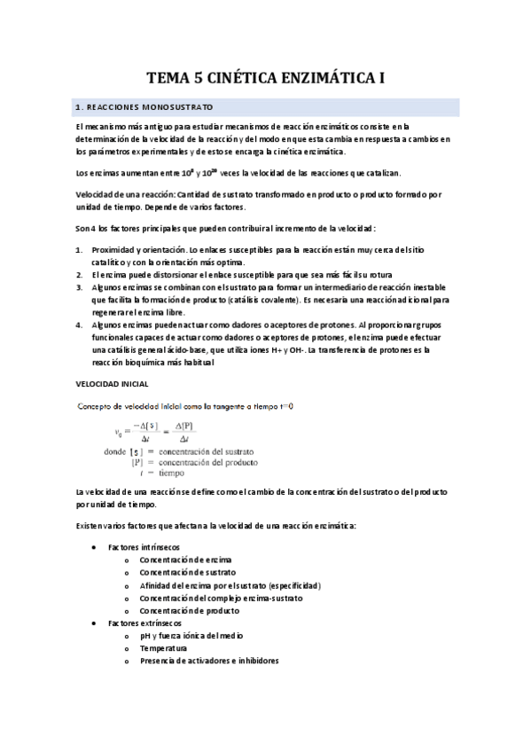 He publicado nuevos apuntes de 2º Enzimología General y Aplicada: Tema5Cinetica-enzimatica.pdf