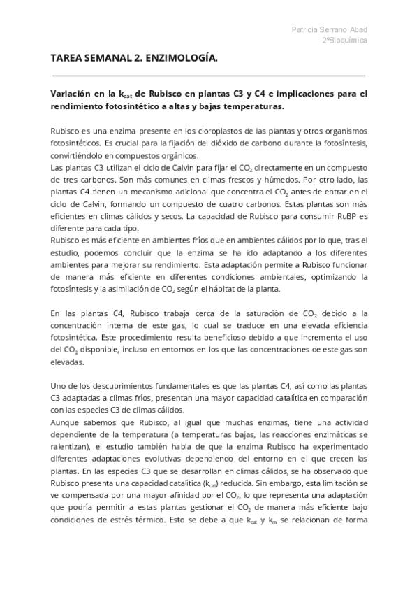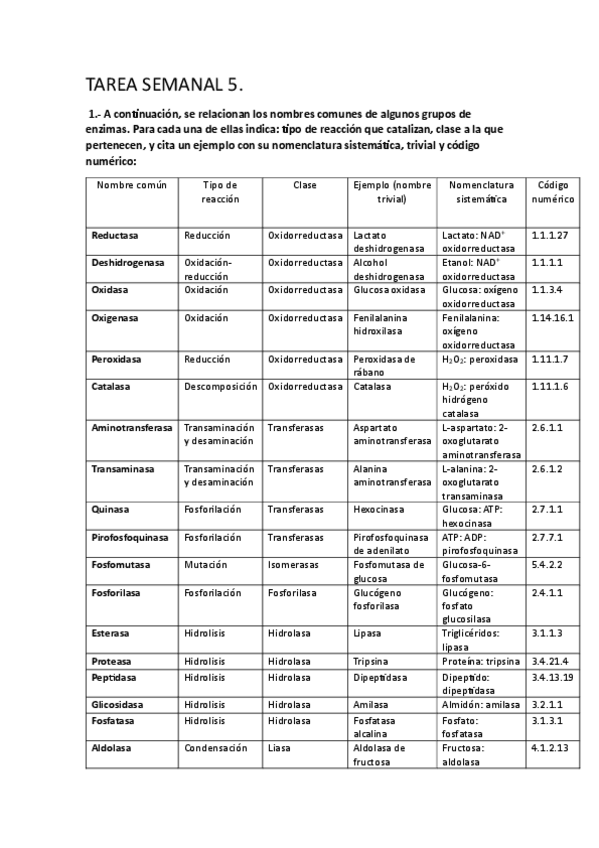 Tareas semanales enzimologia
