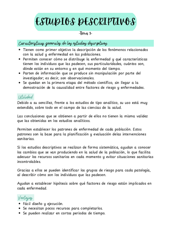 Subo apuntes del Tema 2 de EPIDEMIOLOGÍA EN SALUD ORAL de 1ro de Higiene Bucodental: ESTUDIOS DESCRIPTIVOS.