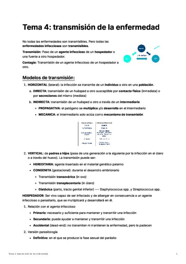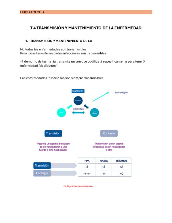 apuntes Tema 4: transmisión de la enfermedad de Epidemiología