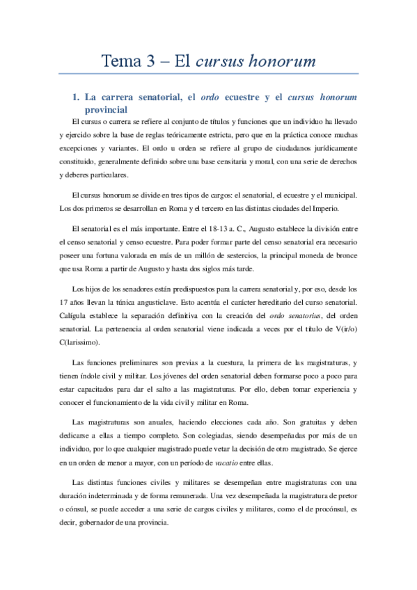 He publicado nuevos apuntes de 2º Epigrafía y Numismática: Tema 3 El Cursus honorum.docx