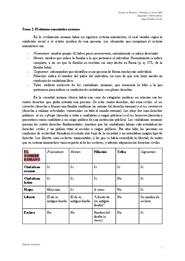 He publicado nuevos apuntes de 2º Epigrafía y Numismática: RESUMEN-ONOMASTICA-ROMANA.pdf