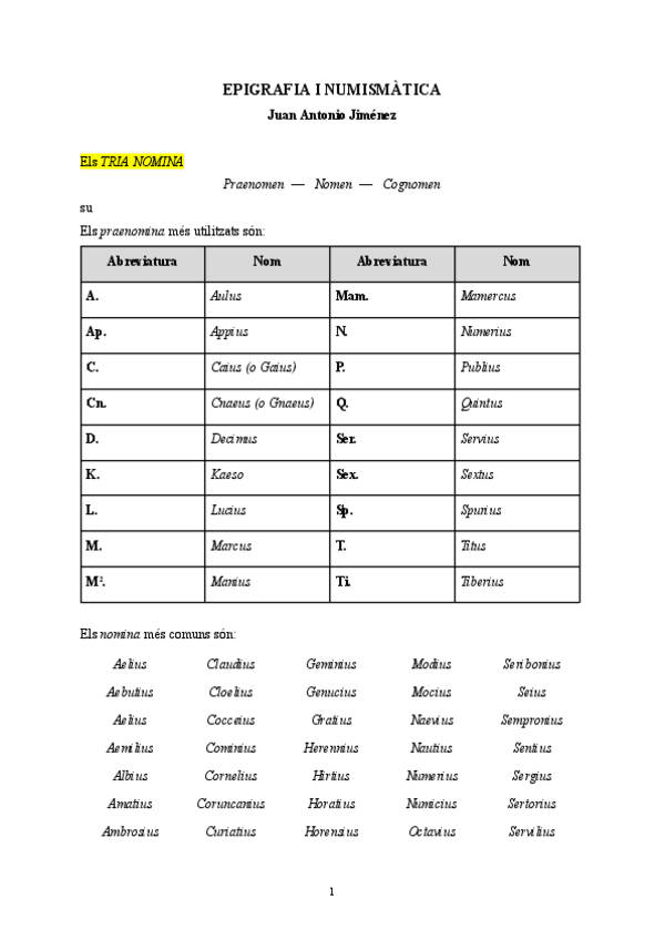 Apunts complerts de l'assignatura d'Epigrafia i Numismàtica del professor Juan Antonio Jiménez
