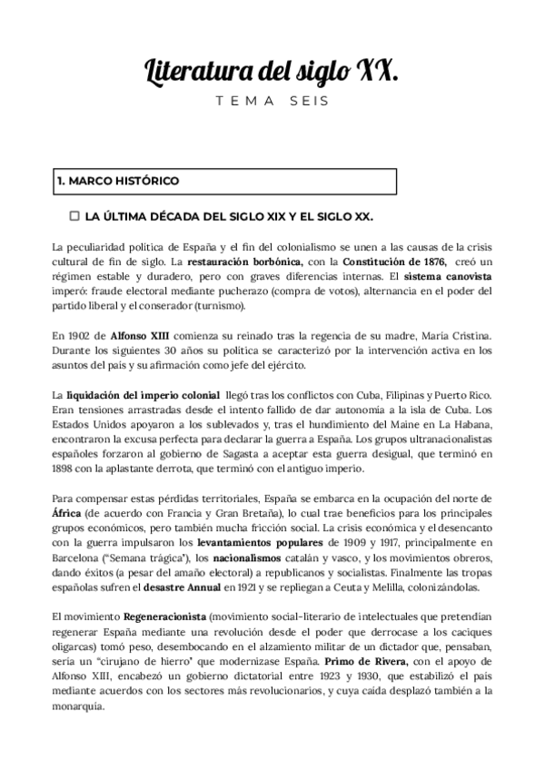 He publicado nuevos apuntes de 1º épocas y Textos de la Literatura Española e Hispanoamericana: TEMA-6.-MODERNISMO-GENERACION-98-VANGUARDIA-Y-POSGUERRA.pdf