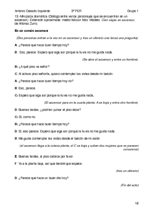 He publicado nuevos apuntes de 4º Escritura Creativa: Práctica 13 - Minipieza dramática ascensor.pdf