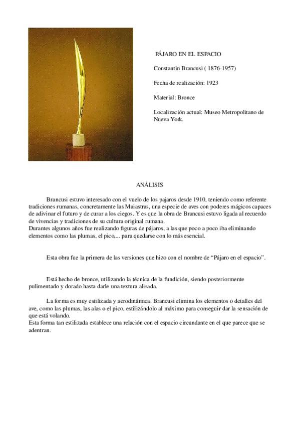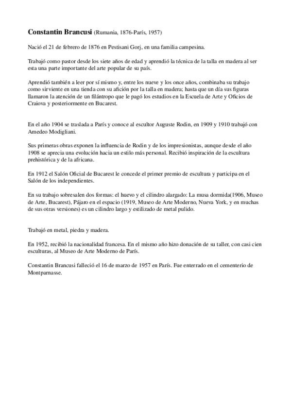 He publicado nuevos ejercicios de 1º ESCULTURA I: LENGUAJES Y MATERIALES: Trabajo-de-investigacion-BRANCUSI.odt