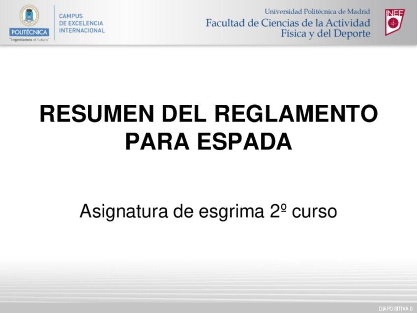 He publicado nuevos apuntes de 2º Esgrima: Reglamento-Espada-2o-INEF.pdf