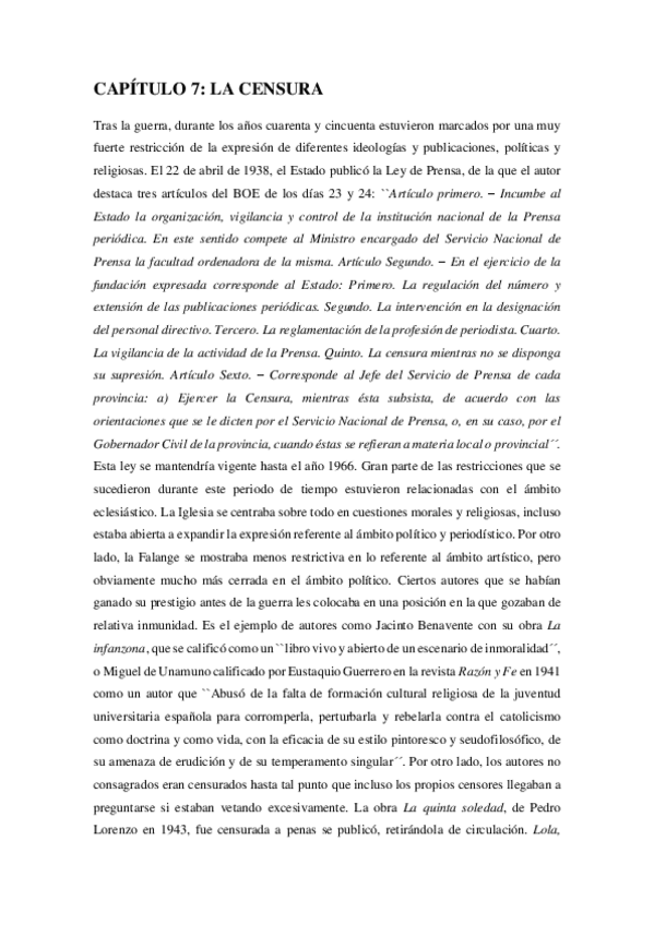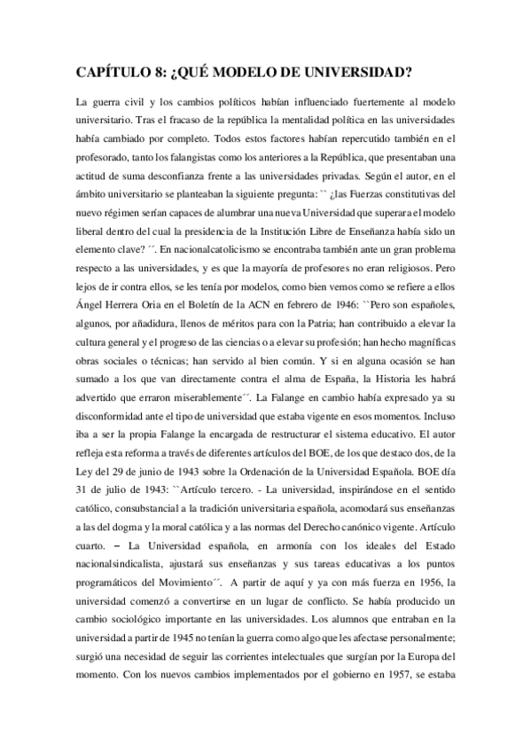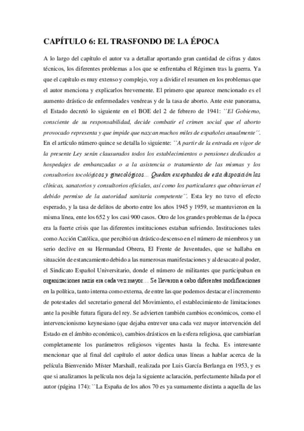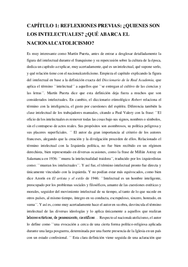 Trabajo completo incluyendo resumen por capítulos y análisis del franquismo y los intelectuales
