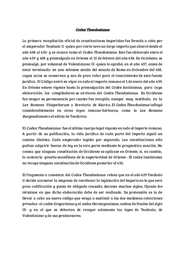 He publicado nuevos apuntes de 1º España en la Configuración Histórico-Jurídica de Europa: Practica-Codex-Theodosianus-Espana-en-la-Configuracion-Historico-Juridica-de-Europa.pdf